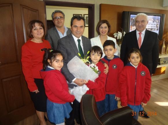 Akant İlkokulu ve Akant Ortaokulu olarak 31.12.2014 günü Yönetim Kurulu Başkanımız Sayın Sarper DERMUT, Okul Yöneticilerimiz Sayın Hıfzı YETGİN, Sayın Münire YILDIZ Öğretmenlerimizden Sayın Ceren KARAYAZGAN ile Öğrencilerimiz Ekin DERMUT, Ada AKSOY, Yiğit ÇAKMAKLI ve Ata DAVULOĞLU ile birlikte İl Milli Eğitim Müdürümüz Sayın Osman Nuri GÜLAY’ ı ziyaret ettik. Önerilerini aldık. Türk Milli Eğitimine ve Antalya İl Milli Eğitimine yaptıkları hizmetler ve Katkılardan dolayı teşekkür ettik.